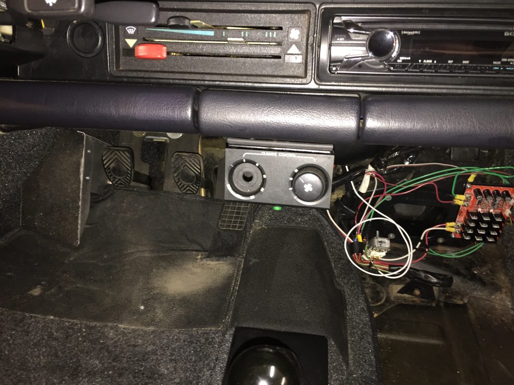 The AC controls were left in their “box” which was moved up under the dash and attached to the ashtray support using a small bracket made from aluminum plate. Leter, I swapped it for a 3D printed box as shown in the lead photo.