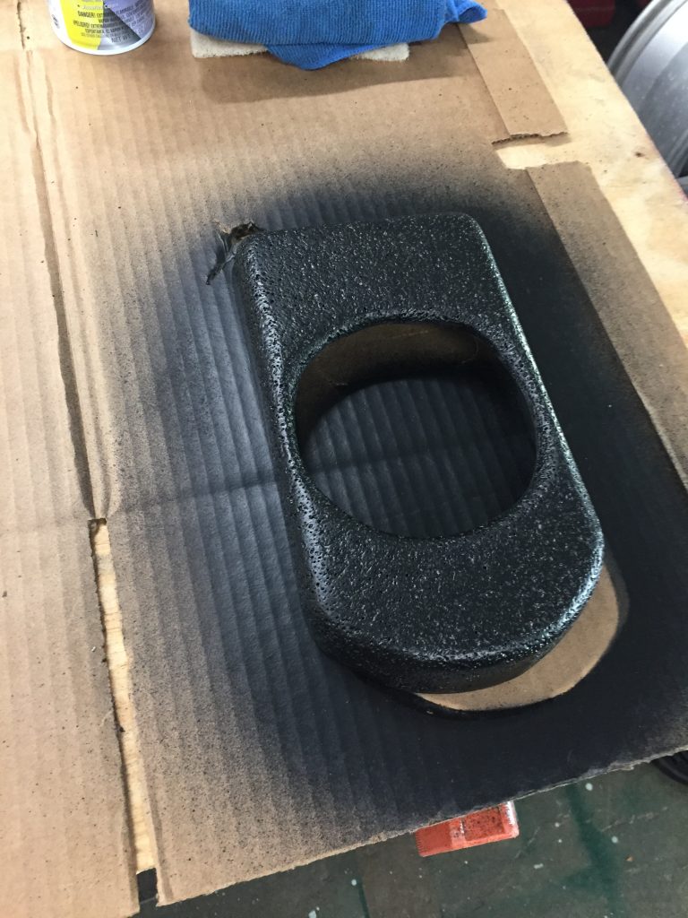 For the shifter cover, I measured the required outer dimensions and shift boot hole and mocked it up with paper before cutting and forming from a 2×6. Some ~1/16th thick plastic was vacuum-formed over the top. I heated the plastic too much and it bubbled however, after sanding and painting with Plastidip, I was satidfied with the final texture.