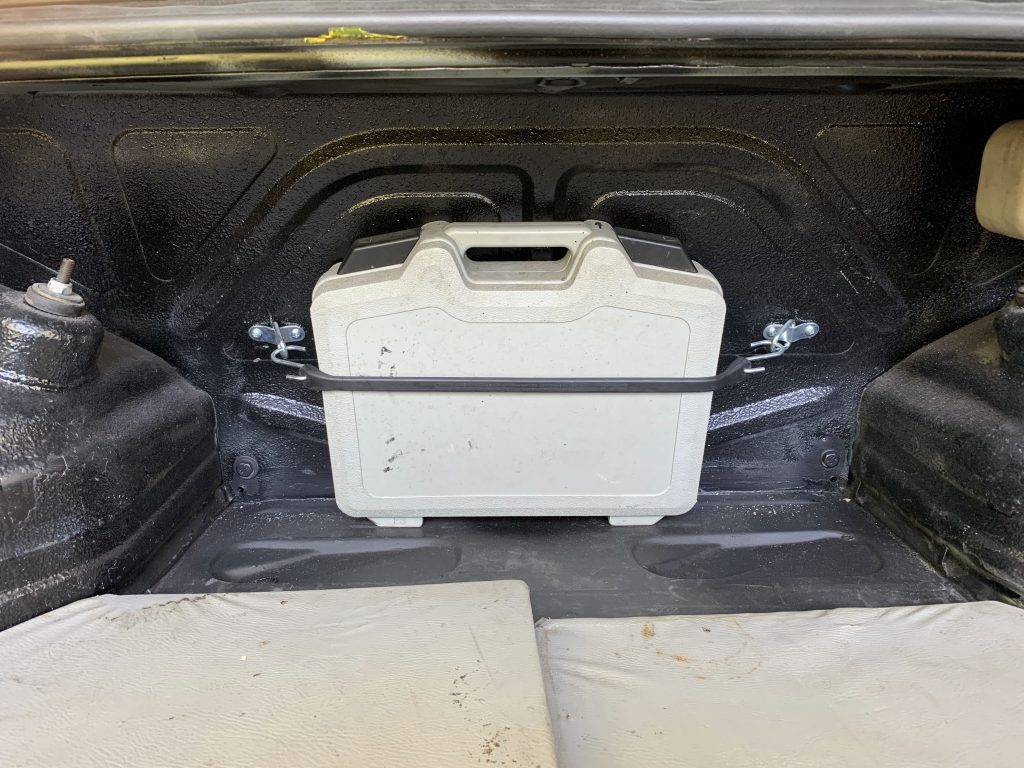 The BMW had a jack and tire iron but no tool kit. So, I built one with the general tools and some similar to the Porsche kit. Some were placed under the rear seat and others in a box attached to the trunk wall.